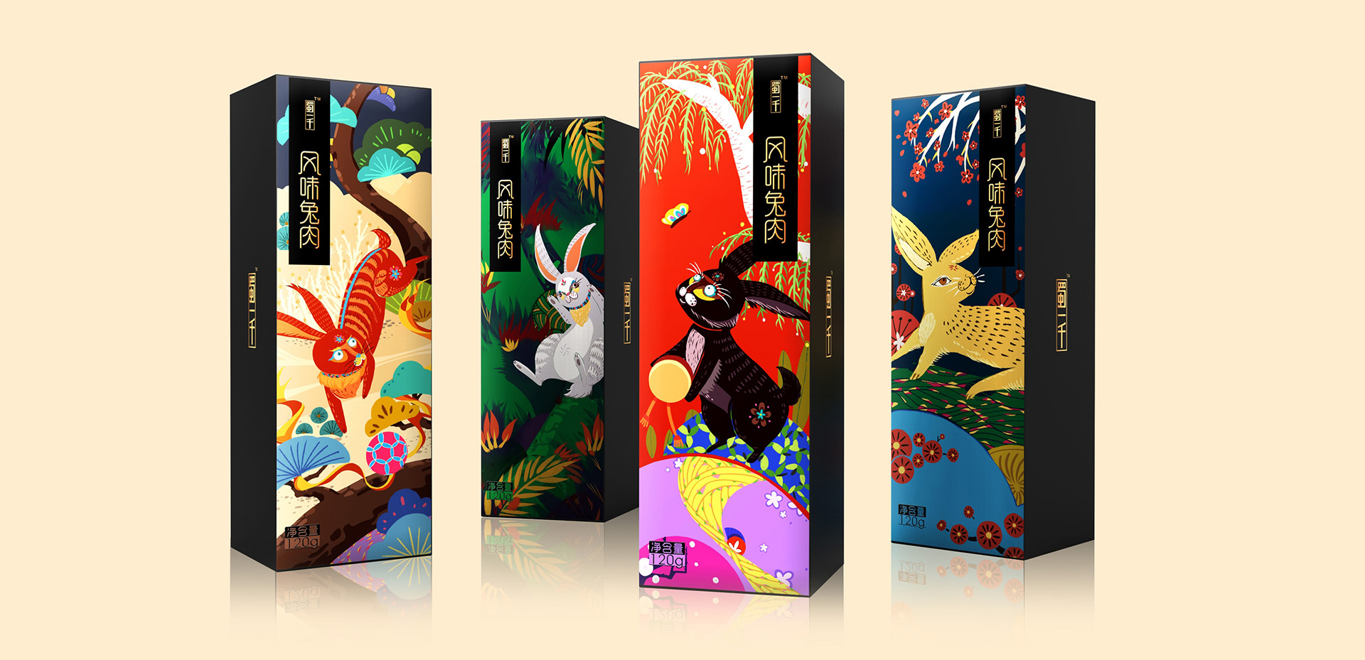 好的包裝會(huì)說(shuō)話,好看的包裝更會(huì)說(shuō)“動(dòng)人的話”!圣智揚(yáng)為“蜀一千”創(chuàng)作的風(fēng)味兔肉系列插畫,風(fēng)格新穎、顏值不凡,超出了客戶的預(yù)期,并成為市場(chǎng)上同類產(chǎn)品的經(jīng)典之作。